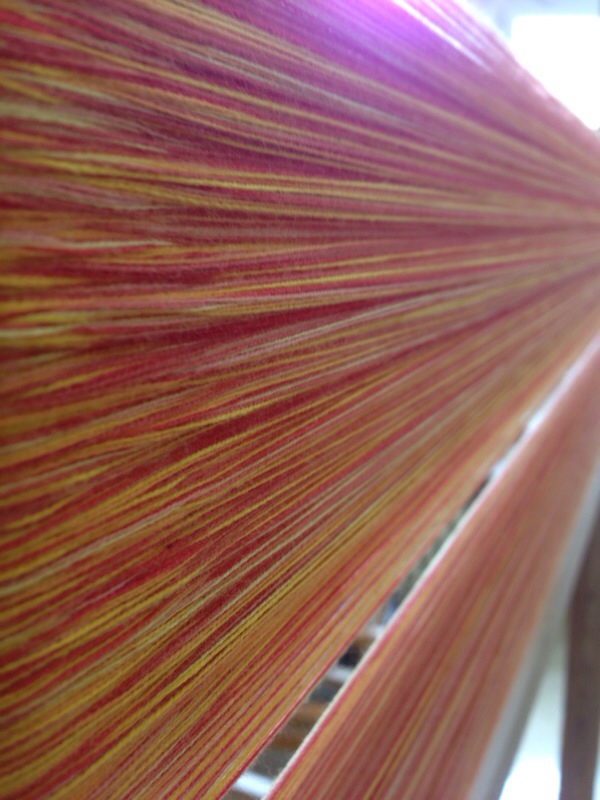 Ich habe zwei Ketten (Baumwolle Ne 16/2) zu je 20 m für Geschirrtücher geschärt. Schießen werde ich mit Leinen.