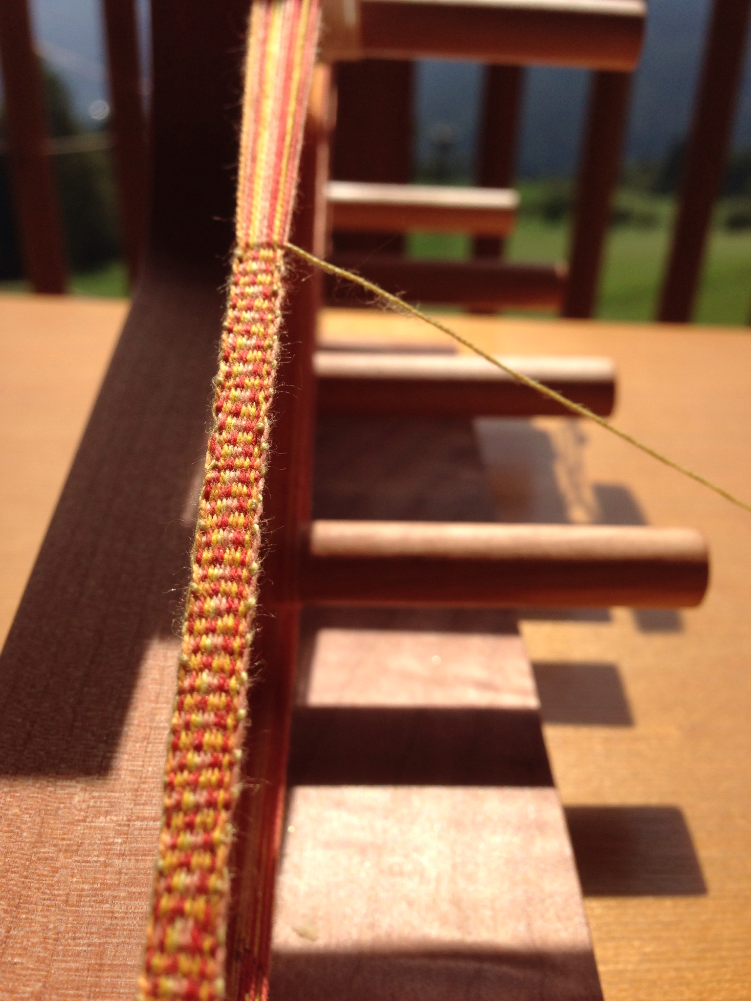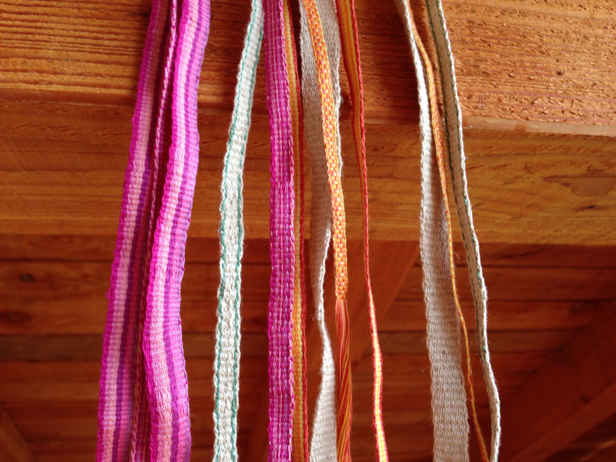 Aus dem gleichen Material, das ich für die Kette verwendet habe, webe ich Aufhänger für meine Hand- und Geschirrtücher.