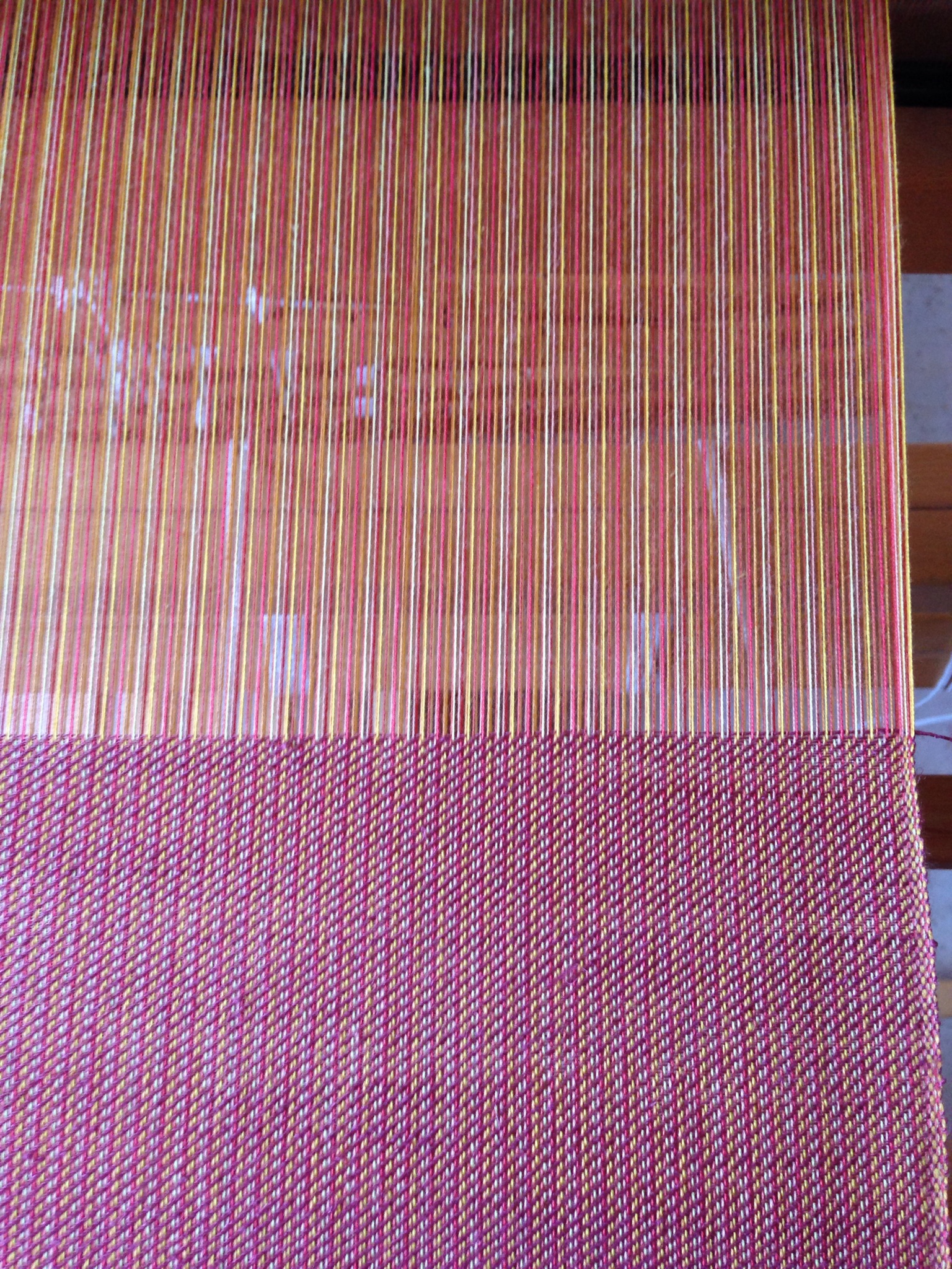 Ich möchte unterschiedliche Schussfarben ausprobieren und bin schon sehr neugierig, wie sie dann zusammen mit der Kette wirken.