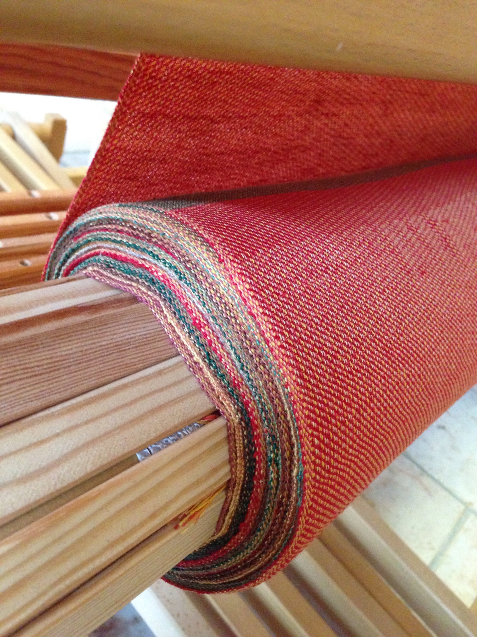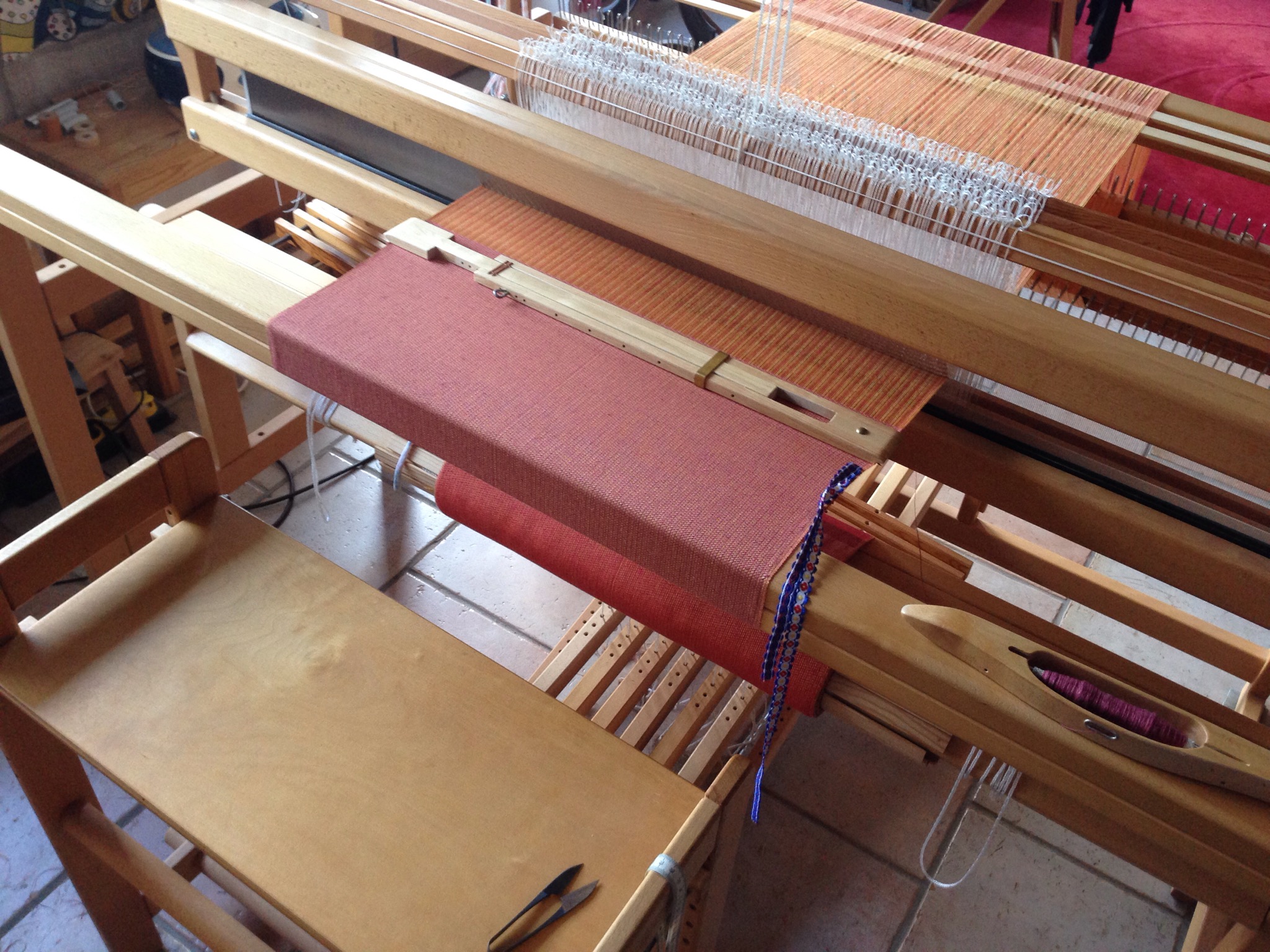 Der Kettbaum leert sich allmählich, der Warenbaum füllt sich, der Webstuhl darf morgen seine Reise nach Sachsen antreten!