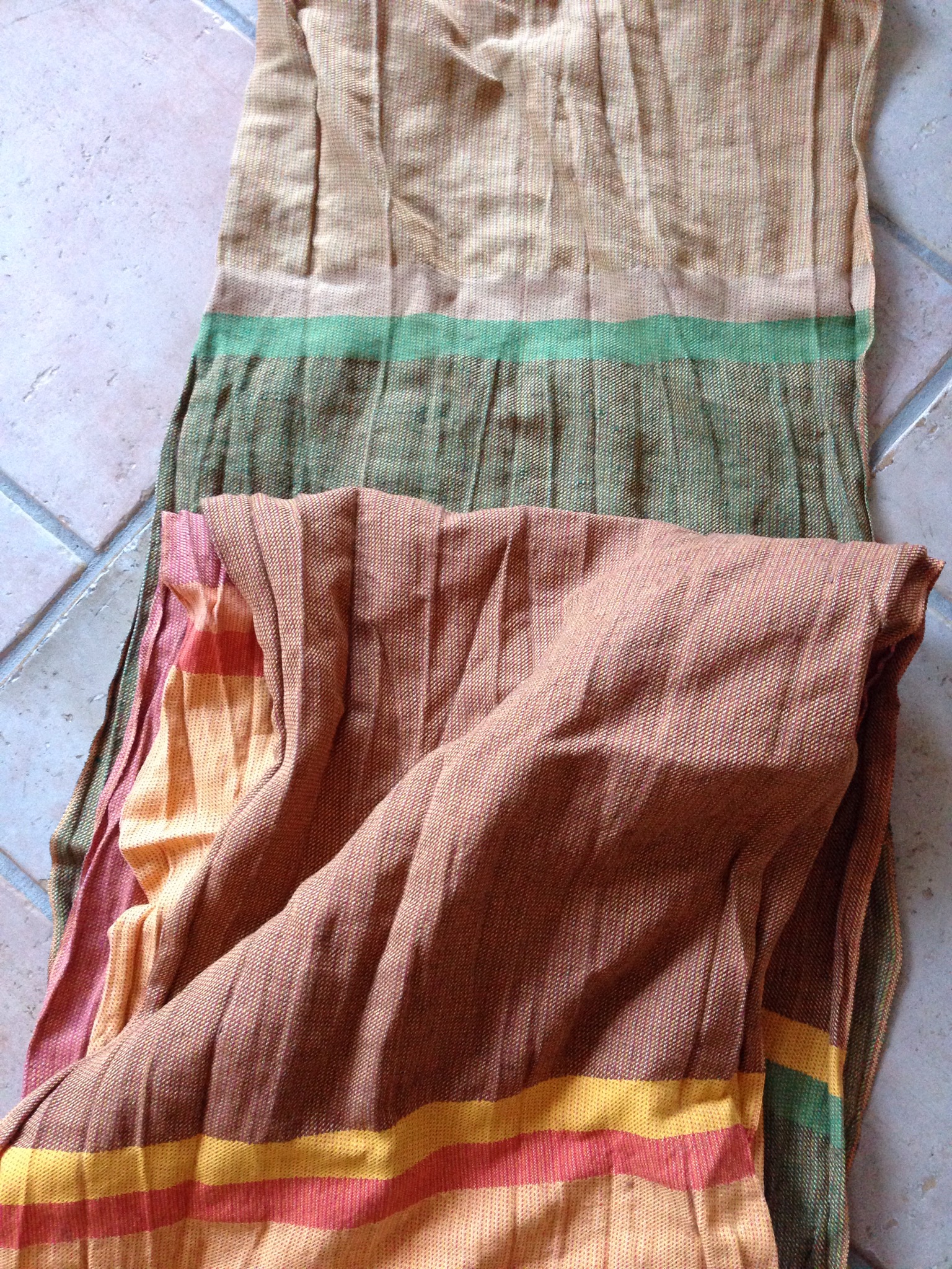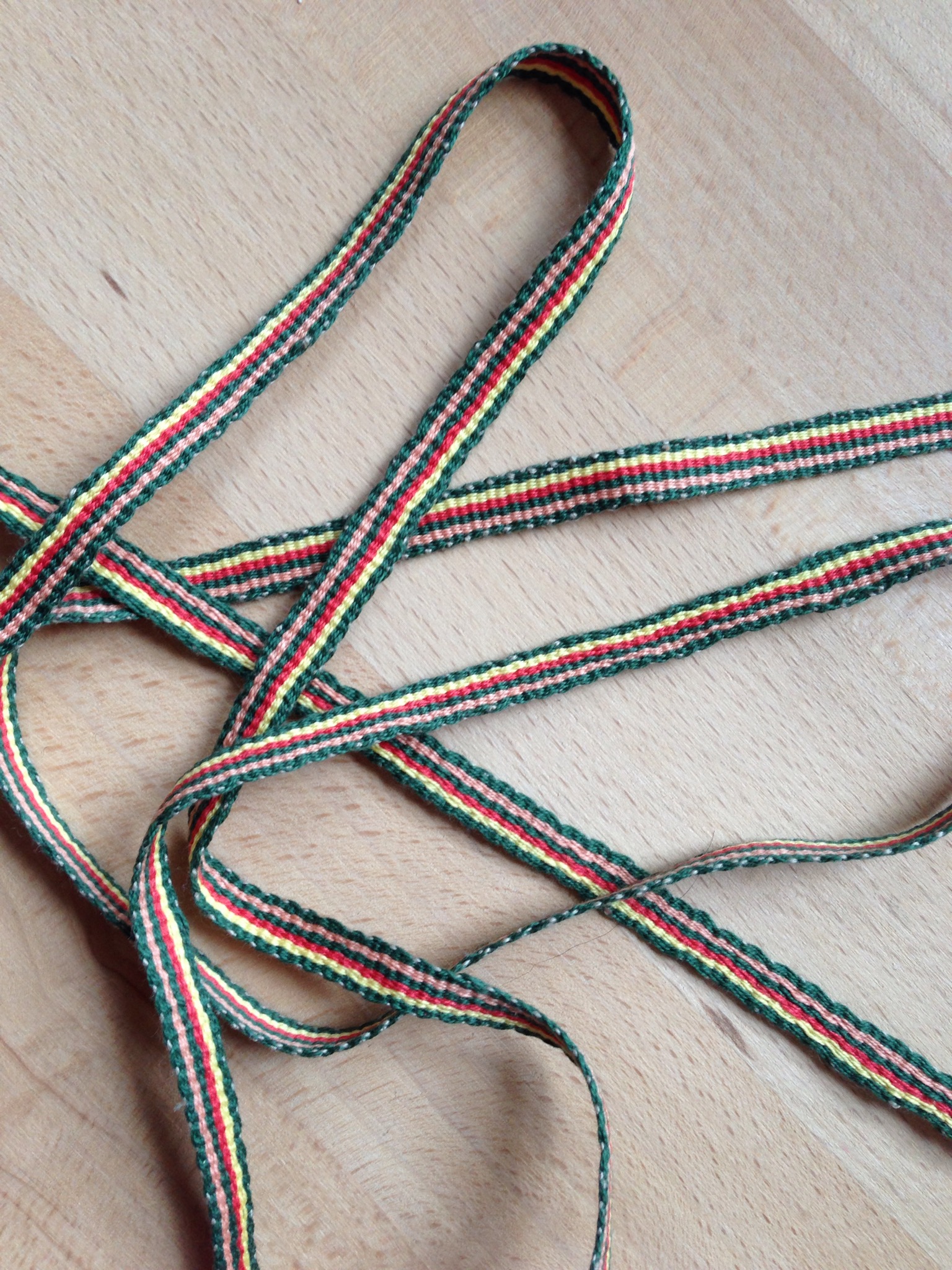 Am Bandwebgerät (inkle loom von Ashford) habe ich gleich noch Aufhänger für die überwiegend grünen Tücher gewoben.
