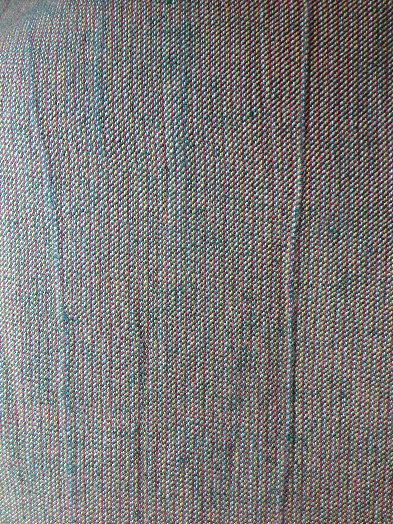Diese Fusseln entferne ich (auf Vorder- und Rückseite) jetzt händisch mit einer Bürste. Leider fühlen sie sich in den Falten sehr wohl und sind recht hartnäckig vor Ort. Heute mache ich mit einer Zahnbürste weiter, vielleicht geht das besser. Der entfusselte Stoff sieht dann so aus (auch nicht viel besser):