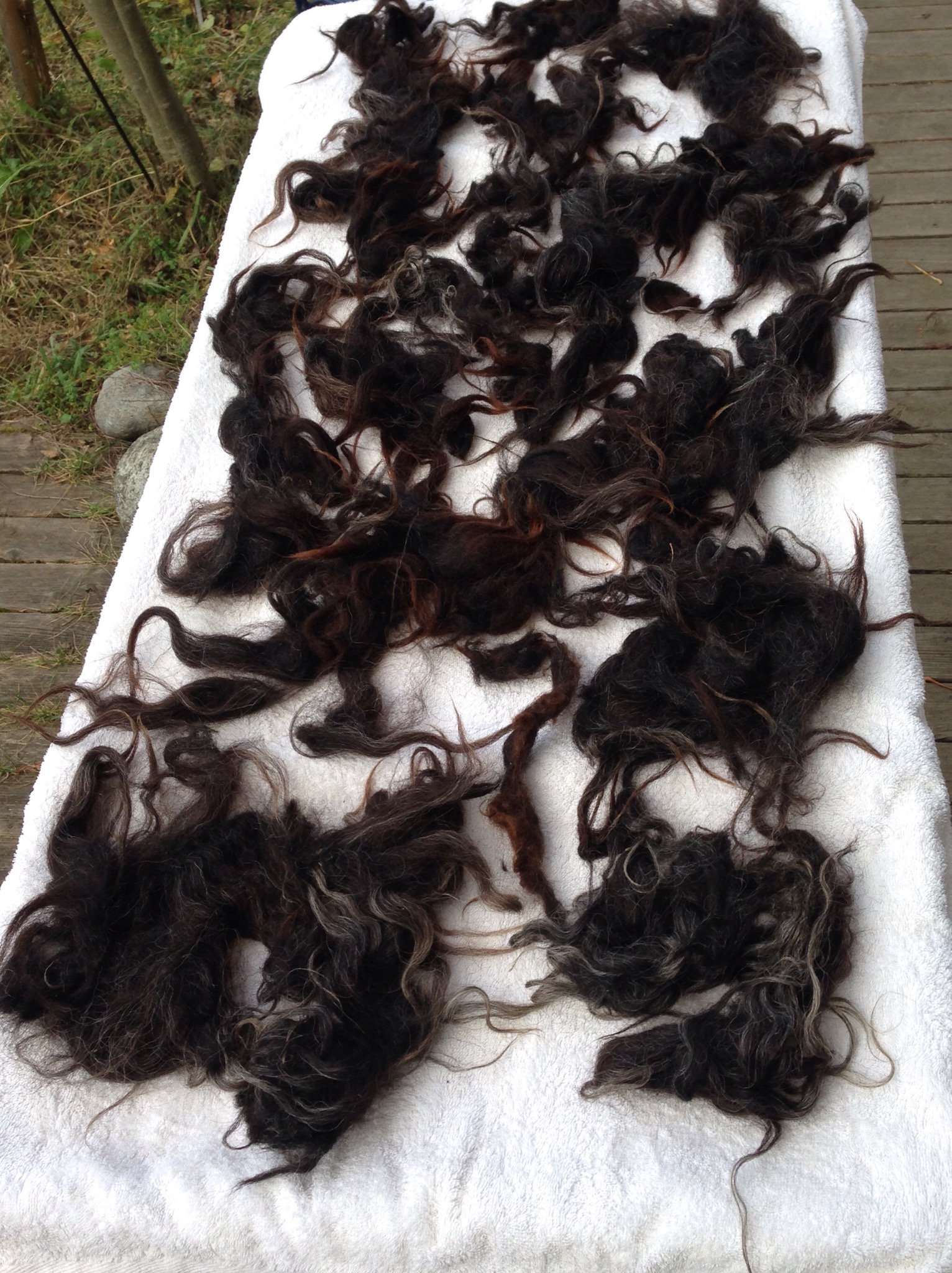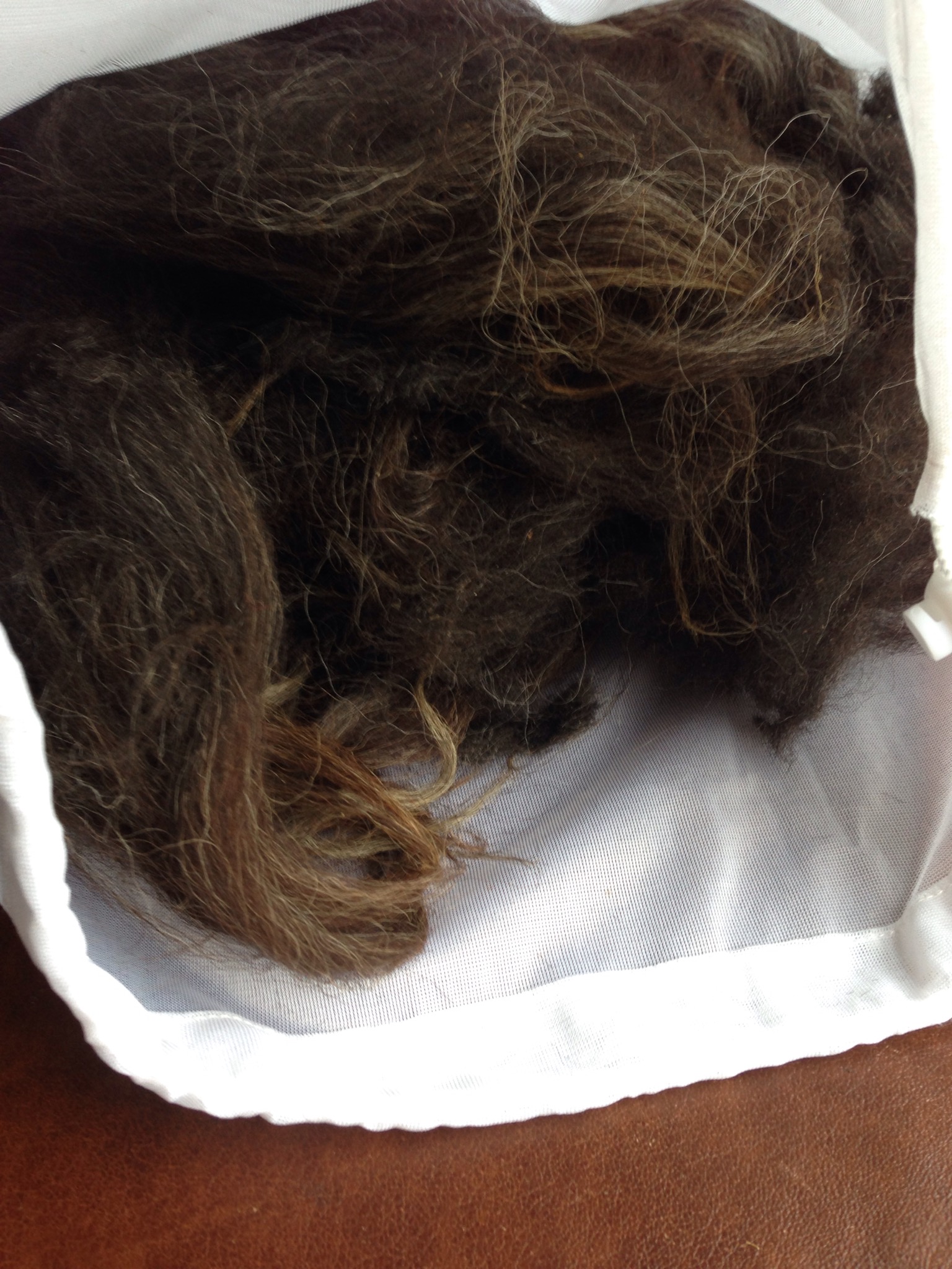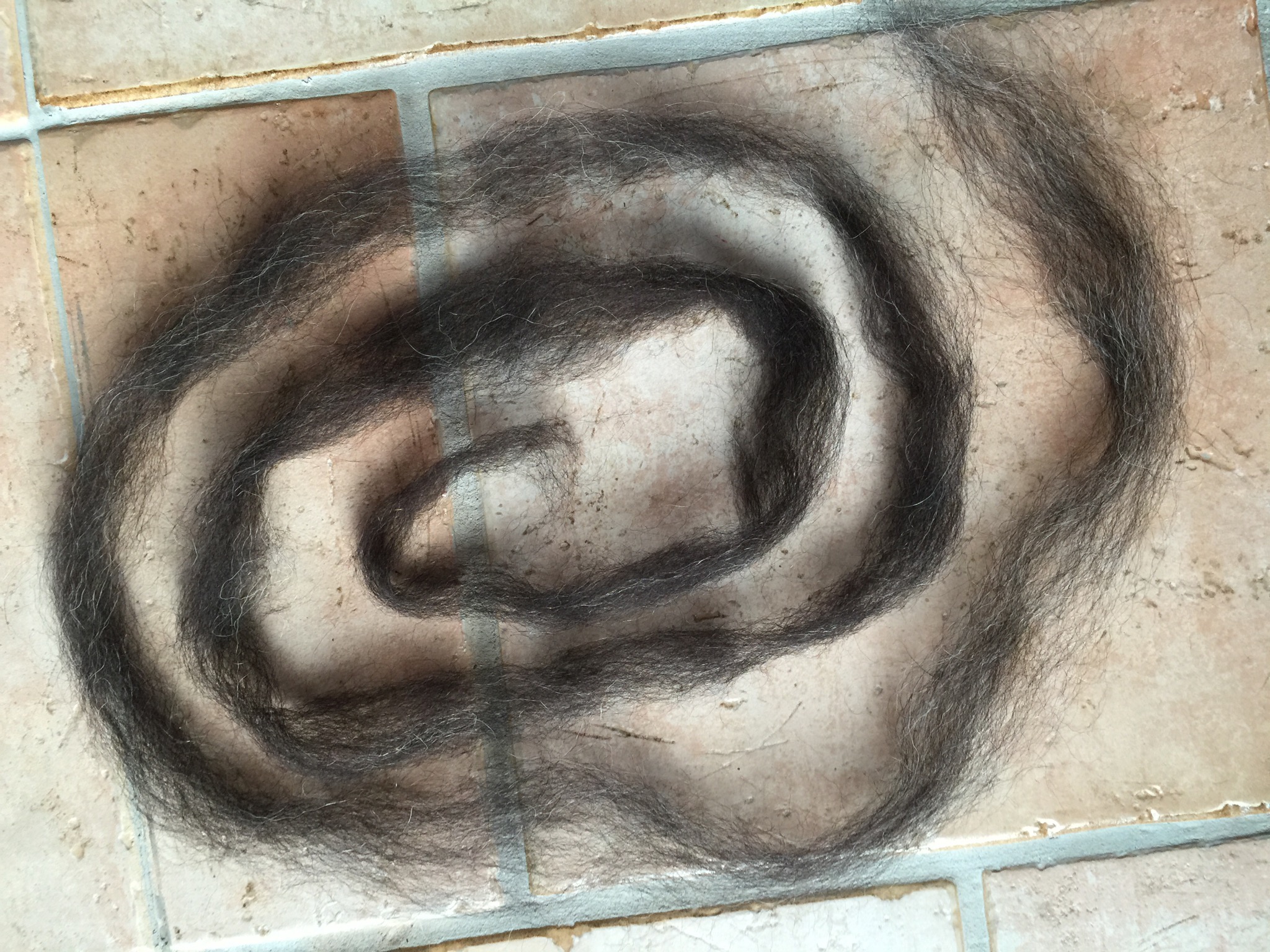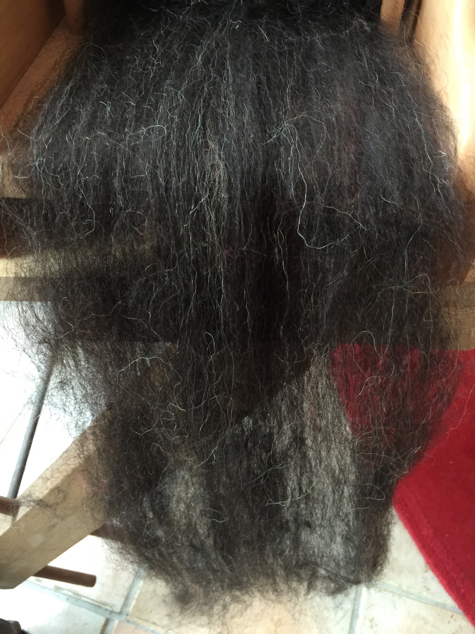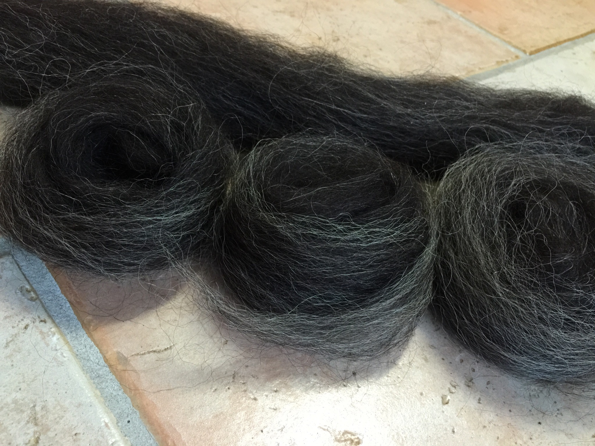 Ich denke, ich werde versuchen, einen Teil zu kardieren und einen zweiten Teil zu kämmen. Dann sehe ich ja, was sich besser verspinnen lässt. Ich möchte sie unbedingt verspinnen (nicht filzen).