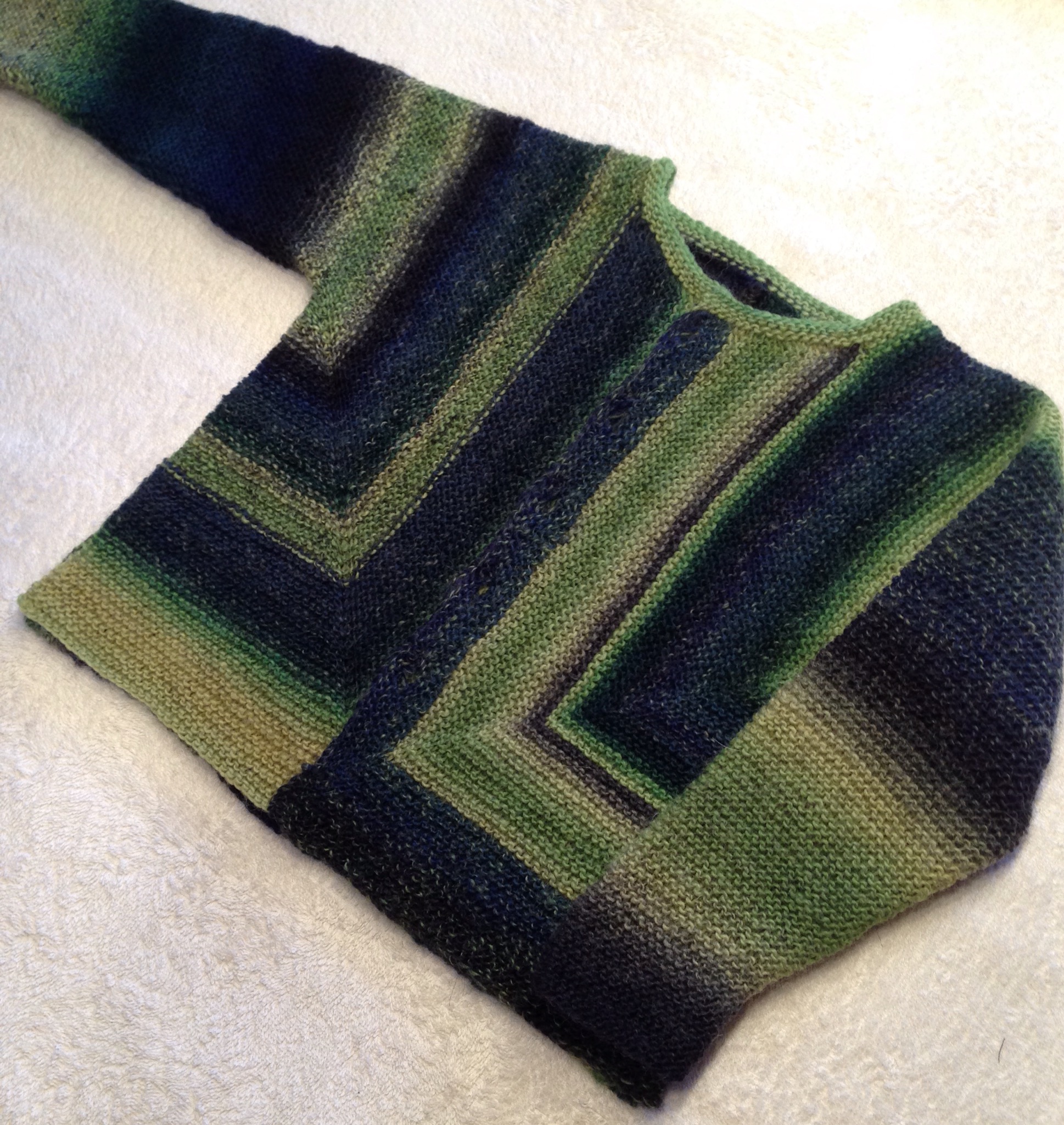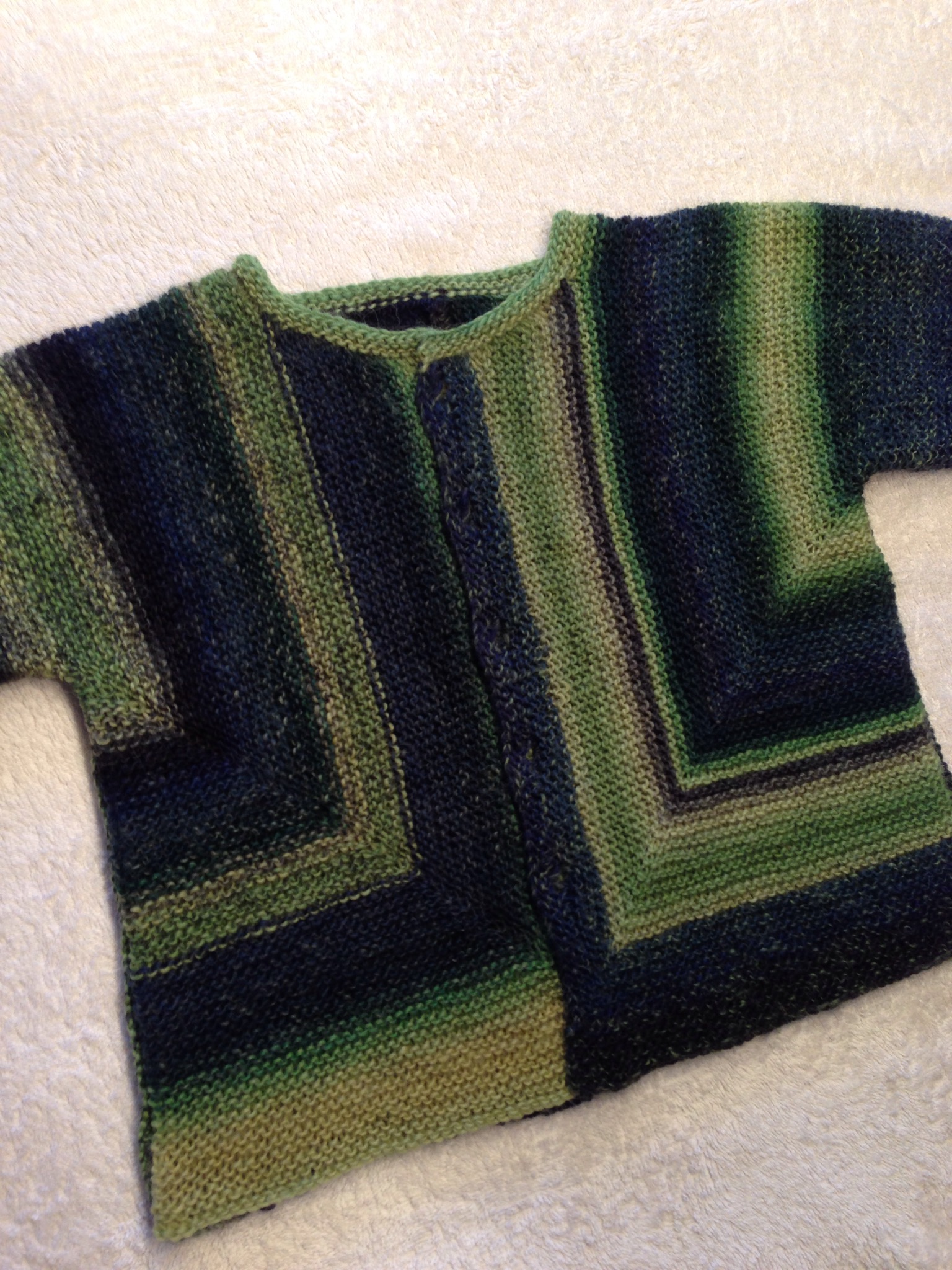 Für meinen jüngsten Enkel habe ich einen schnellen Kinderpulli mit Sockenwolle, Nadeln Nr. 4 gestrickt.