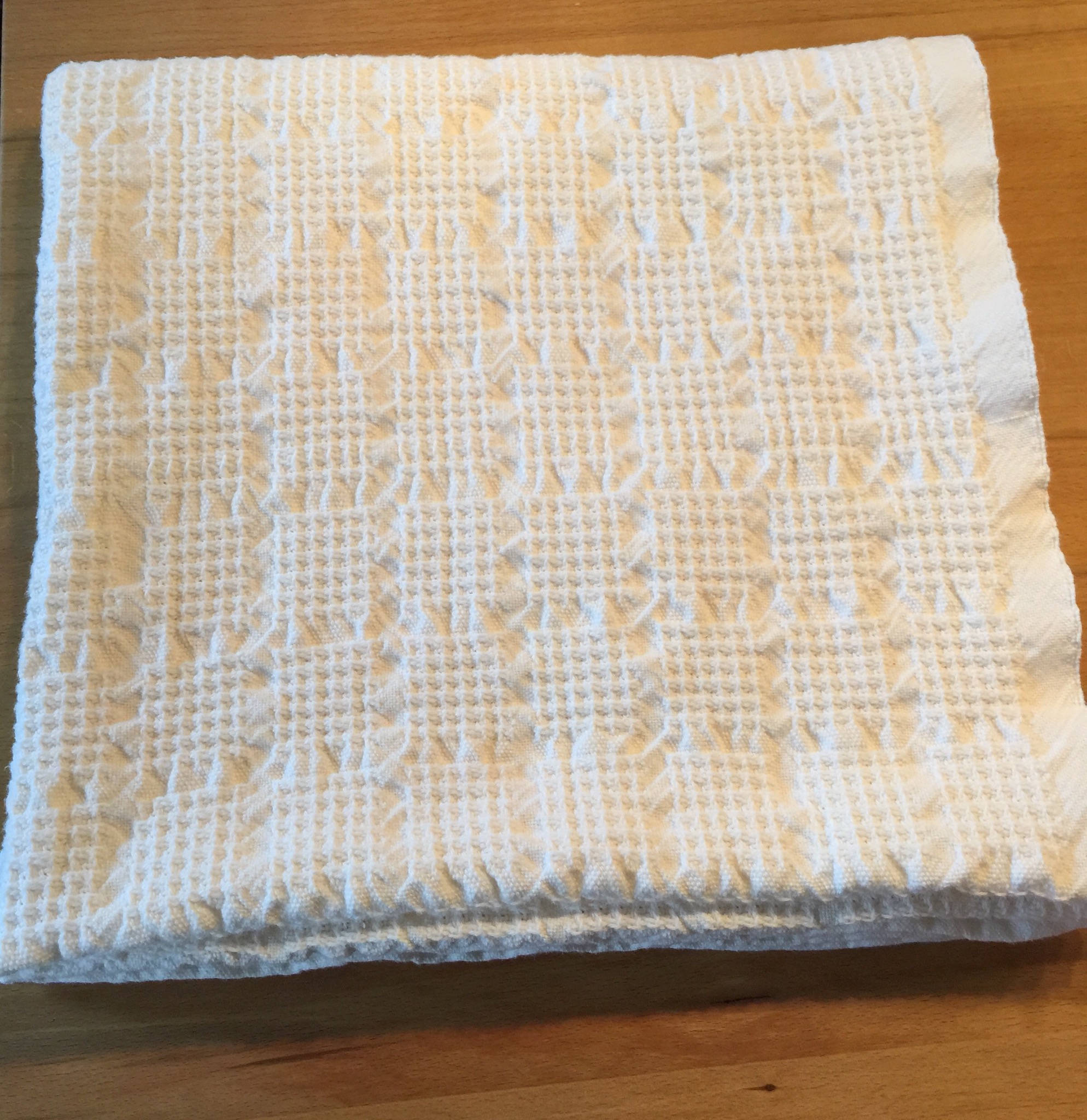 Um die Wartezeit zu überbrücken, habe ich auf einer bestehenden Kette dieses Handtuch in Waffel- / Leinwandbindung aus Baumwolle gewoben 70×140 cm. Nach dem Waschen und Trocknen im Wäschetrockner ist es angenehm flauschig geworden. Ich habe eine große Freude damit.