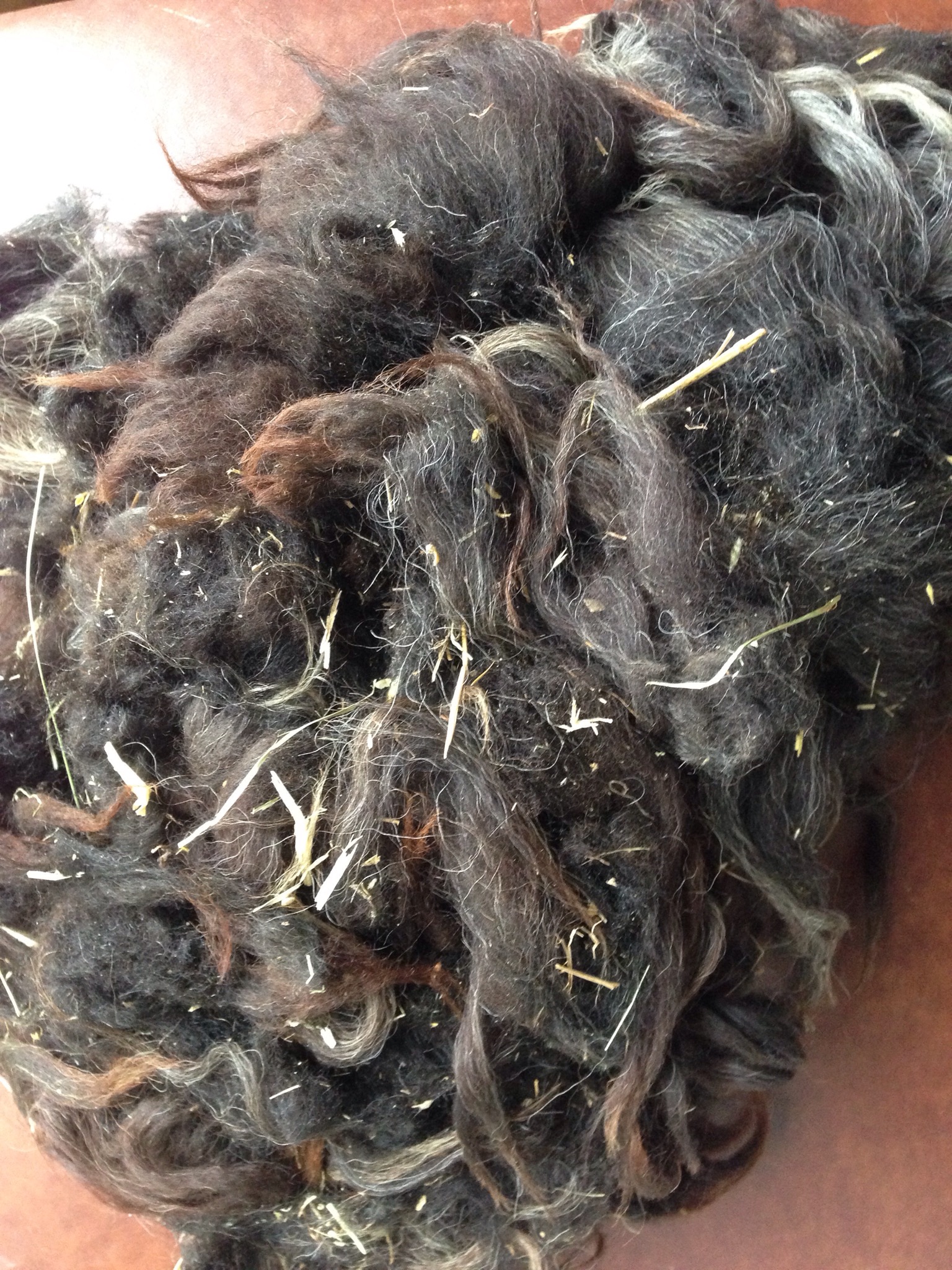 Da liegt sie nun (ein Teil davon) und sollte verarbeitet werden. Ich habe noch keine Vorstellung, was am Ende draus werden soll – filzen, spinnen, stricken, weben? Das wird sich im Lauf der Verarbeitung zeigen – hoffe ich zumindest. Ich werde jedenfalls die einzelnen Schritte hier dokumentieren.