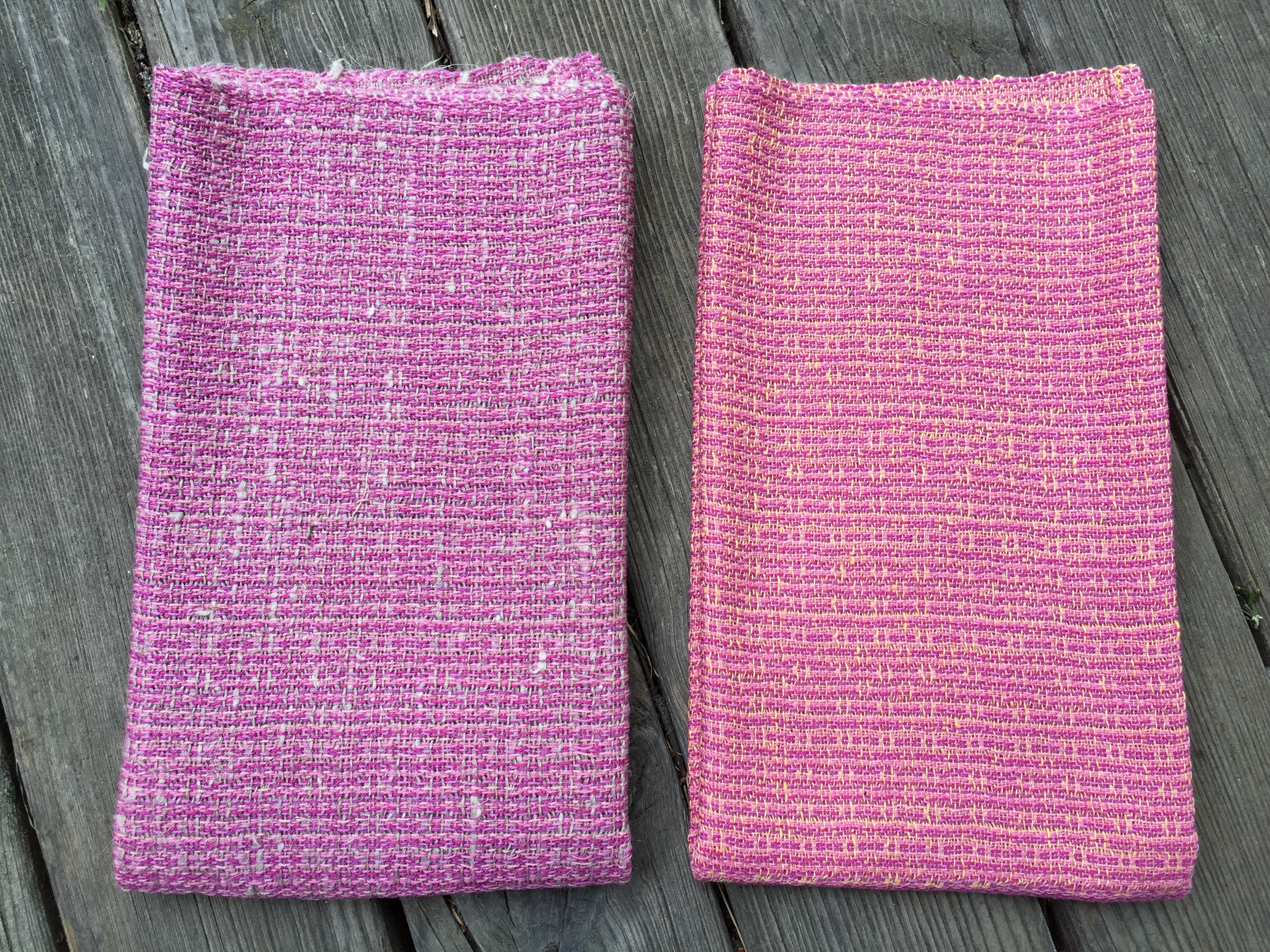 Ich habe geplant, täglich 2 Küchenhandtücher fertigzustellen (säumen, waschen, bügeln) – das sind die von gestern. Ich freue mich, dass ich doch sehr viele mit dem groben Leinen im Schuss gewoben habe, die gefallen mir jetzt nach der Fertigstellung besonders gut.