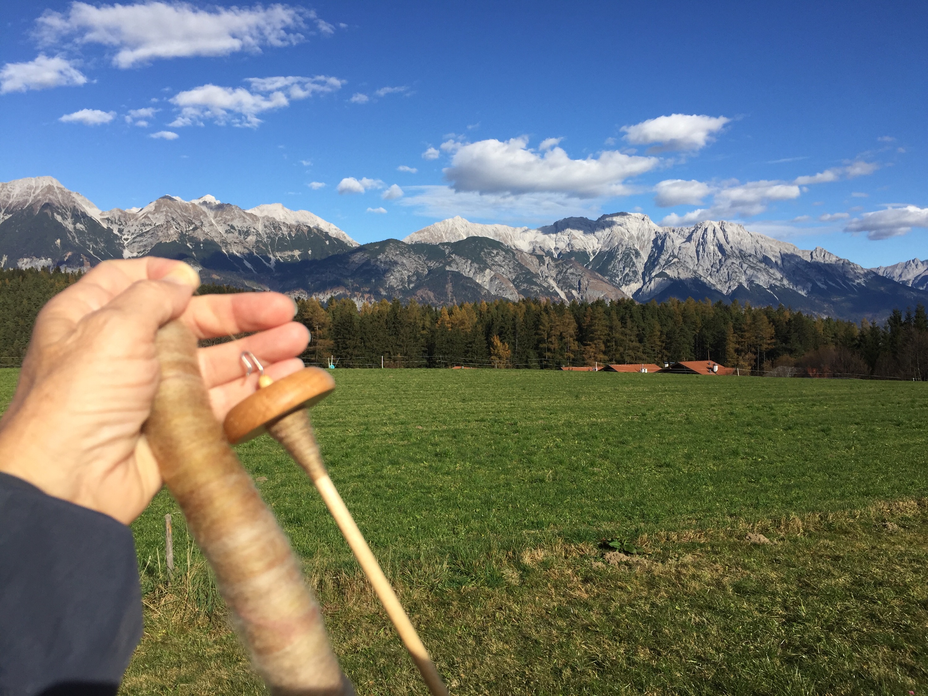 Seit Anfang November läuft dort ein online Workshop zum Thema Spinnen. Das hat mich motiviert, mich wieder mehr damit zu beschäftigen. In letzter Zeit habe ich fast nur mehr sehr dünne Garne gesponnen. Ich dachte, ich hätte es schon verlernt, etwas dicker zu spinnen.