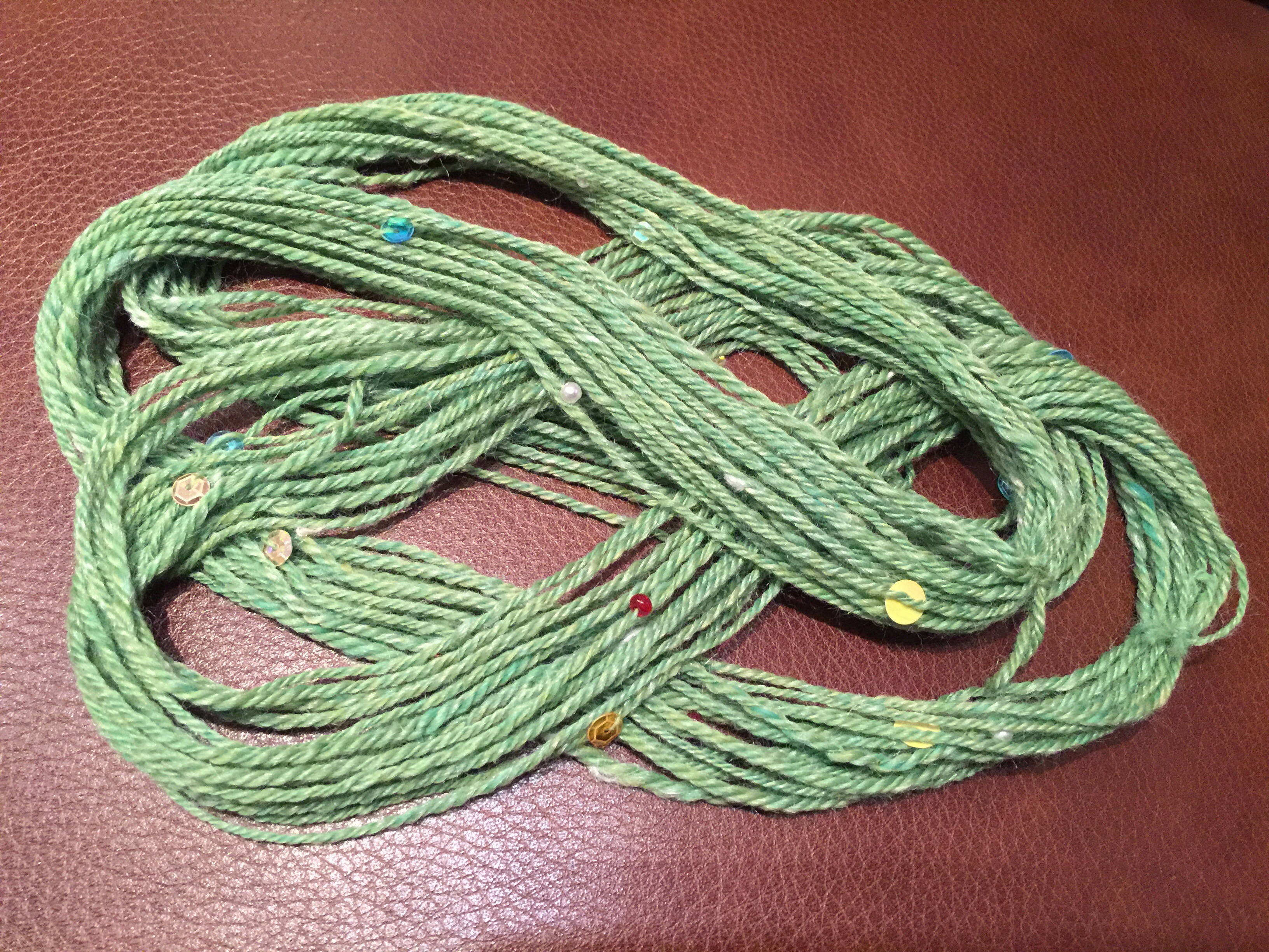 Ich stricke sie mit Nadeln 2,5 mm mit Sockenwolle von Hofer, die ich schon ewig auf Lager habe.