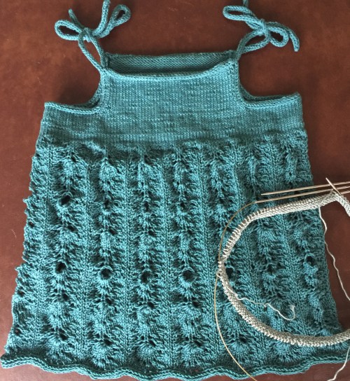 so heißt das Top, das ich für meine beiden Enkelinnen stricke. Eines ist schon fertig (noch nicht gewaschen), mit dem zweiten habe ich gerade angefangen.