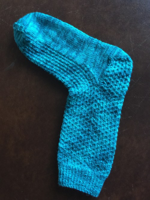 Ein Socken (bei uns in Tirol ist das „DER Socken“ und nicht „die Socke“) ist fertig. Ein paar Fäden habe ich auch schon vernäht.