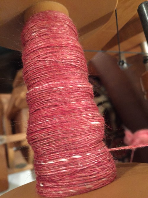 Auf dieses Tuch freue ich mich schon. Gesponnen habe ich auf meinem Majacraft Suzie pro Spinnrad.