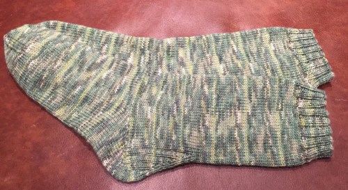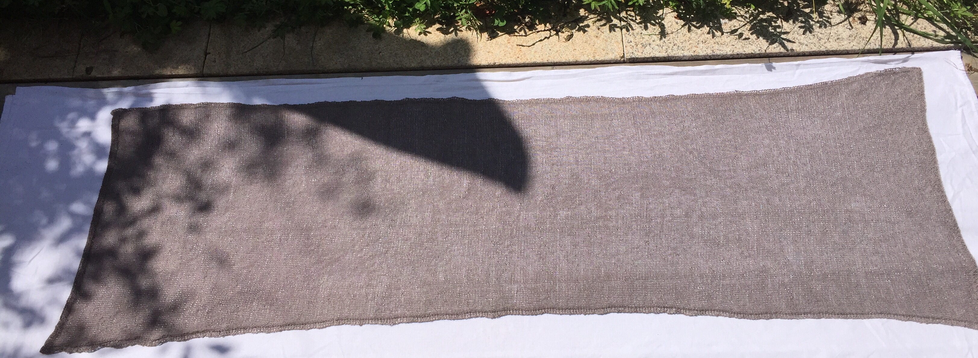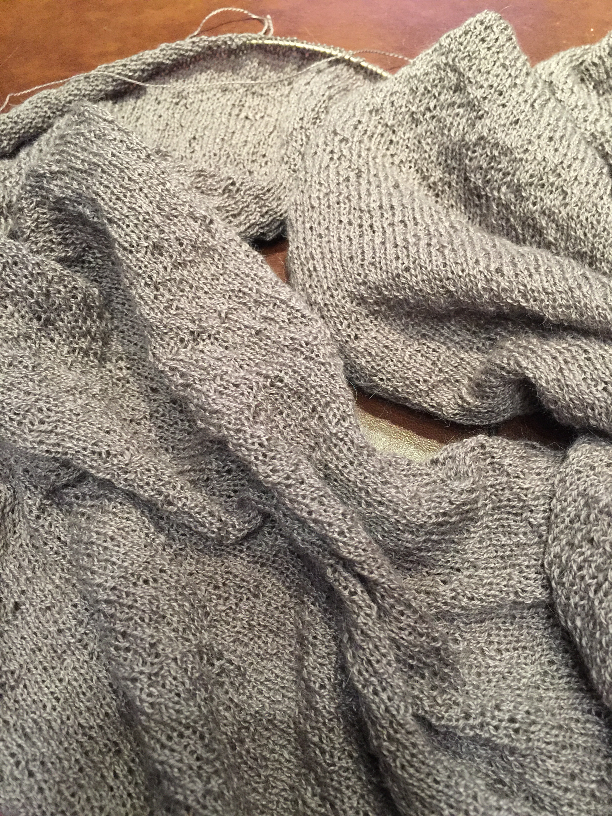 Ich hab’s schon angestrickt, um auszuprobieren, ob die Nadelstärke passt – alles bestens. Jetzt muss ich es ganz weit wegpacken, damit ich nicht dran weiterstricke!