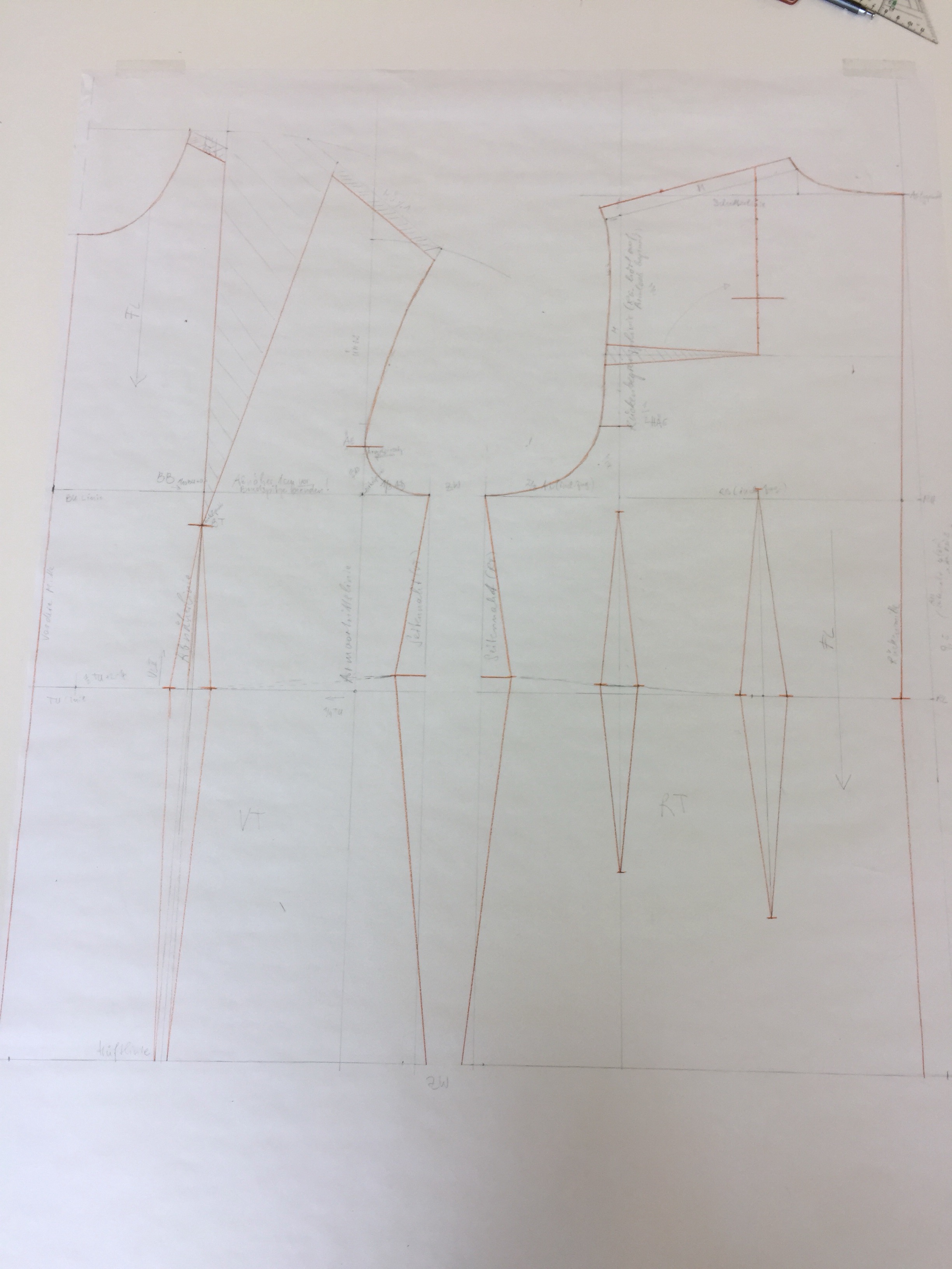 Ich war (und bin) sehr begeistert von diesem Kurs. Theresa ist äußerst kompetent und auch sehr geduldig – somit besitze ich jetzt einen Grundschnitt in meinen Maßen und weiß auch, wie ich ihn abwandeln kann. Gezeichnet haben wir nach dem System Müller-München.