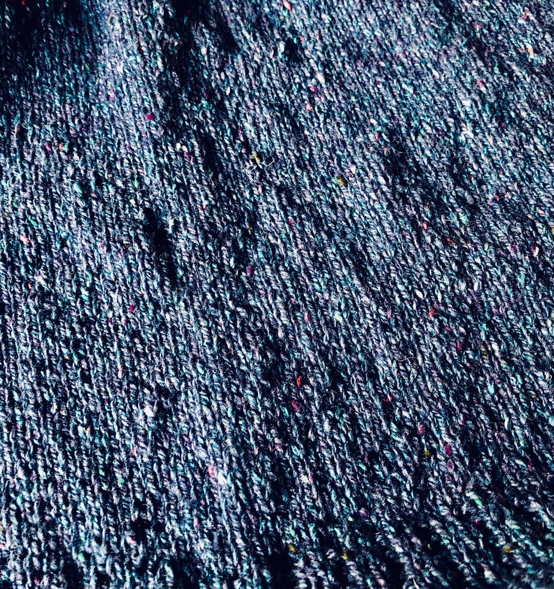 Jetzt bin ich dabei, einen Pulli für mich zu stricken. Die Wolle ist einfach nur ein Traum! Es ist die Arranmore light – 80% Merino, 10% Seide, 10% Kaschmir, LL 300m / 100 g. Es ist ein wunderschönes Tweedgarn. Ich liebe Tweed.