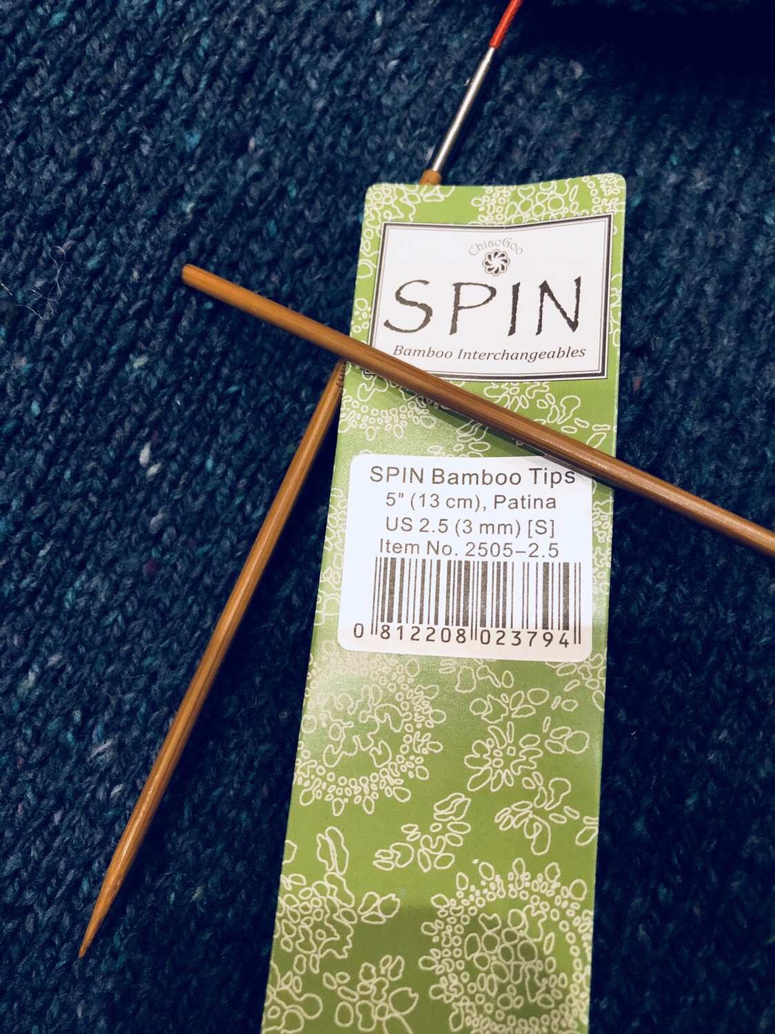 Für meinen Rathbone Pulli habe ich mir jetzt Bambusnadeln von ChiaoGoo gekauft. Mein erstes Paar ChiaoGoo! Ich war mutig – 3 mm stark. Ich wollte sie unbedingt einmal ausprobieren. Und siehe da, das Rückenteil ist schon 30 cm lang, nichts ist gebrochen. Es gibt nur einen kleinen Nachteil für mich – sie sind mir fast ein bisschen zu spitz. Da würde ich die etwas abgerundetere Spitze von Knit Pro bevorzugen. Ich glaube, ich werde noch ein bisschen weiter verschiedene Nadeln testen, bevor ich wahrscheinlich wieder zu meinen geliebten Addi Metallnadeln zurückkehre.