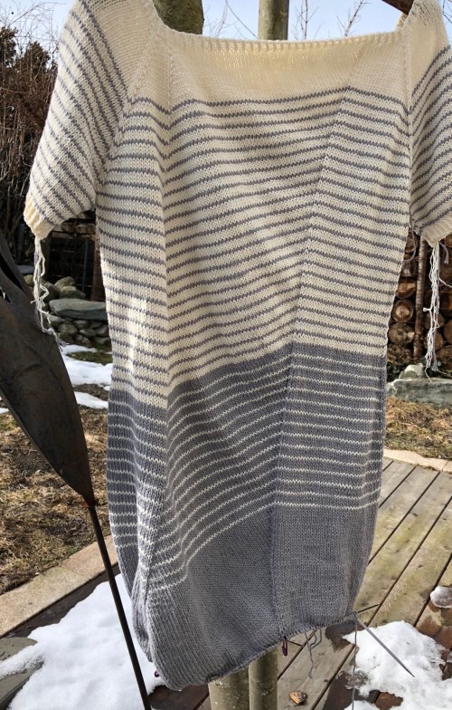 Der Laneway ist heute fertig geworden, das Zusammenfügen im Maschenstich hat sehr gut funktioniert. Jetzt kommt er erst einmal in die Waschmaschine und dann wird entschieden, ob ich ihn jemals tragen werde oder nicht.