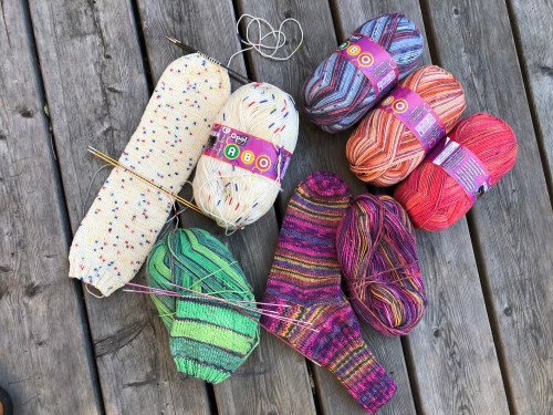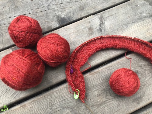 Ich hab alle Strähnchen zu Knäueln gewickelt und lange überlegt, was ich damit stricken soll. Schlussendlich bin ich beim Featherweight Cardigan gelandet. Ich dachte mir, so ein kurzes Jäckchen mit nicht allzu langen Ärmeln könnte sich vielleicht ausgehen. Wenn die Wolle nicht ausreicht, finde ich sicher noch eine passende Farbe bei meinen handgesponnenen Strähnchen, womit ich weiterstricken kann.