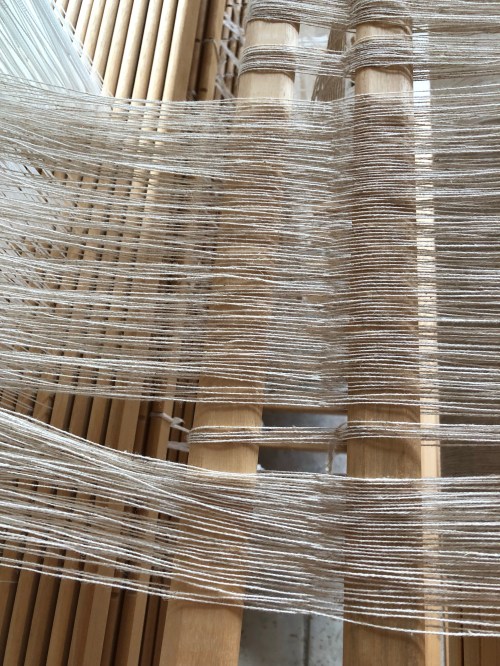 Die Vorhangkette ist gebäumt. Ich freu mich schon auf’s Fädeln.