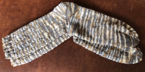 Während ich auf Wollnachschub für meinen Pulli warte, habe ich Herrensocken in Größe 46 gestrickt.