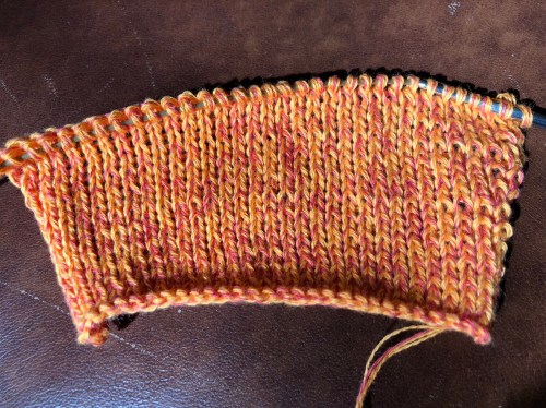 Außerdem ärgere ich mich wieder einmal über Stricknadeln, die man an ein Seil schrauben kann. Schon bei einigen dieses Fabrikats ist die Holznadel abgebrochen – diesmal ist zur Abwechslung das Seil gerissen. Ich muss mich jetzt wirklich endlich einmal auf die Suche nach einem anderen Fabrikat machen.