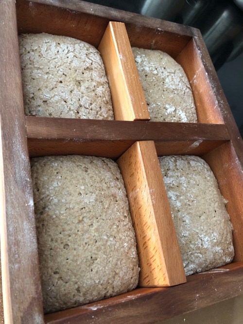Im Backrohr befindet sich gerade ein Brot, das sich Siegerländer Kruste nennt. Das Rezept dafür gibt es auf dem Homebaking Blog. Hier steht es noch zur Gare.
