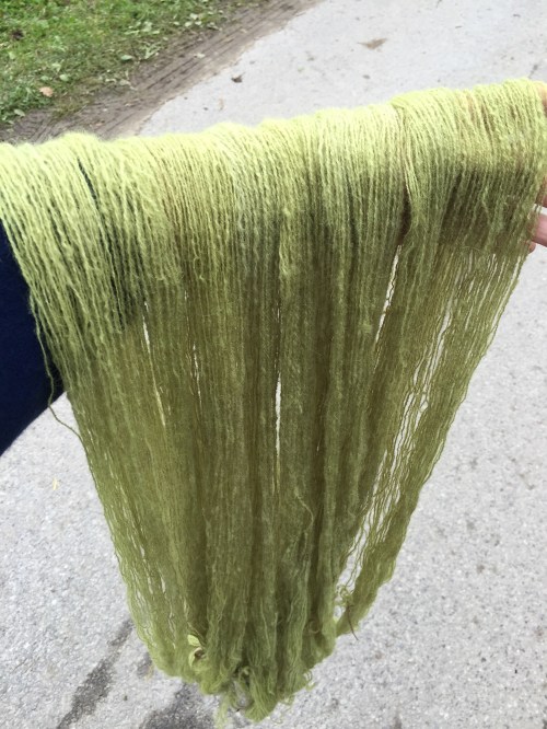 Ich bin sehr glücklich mit meiner Pfeilraupe, sie gefällt mir richtig gut. Was mich auch noch glücklich macht, ist die Tatsache, dass ich sie aus Tiroler Bergschafwolle gesponnen habe – und die kratzt. Mich zum Glück überhaupt nicht, aber alle anderen Menschen, die ich kenne. Somit ist die Raupe für mich gesichert.