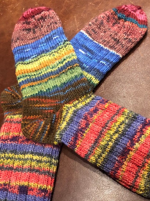 und die Restesocken (Gr. 38, Nadeln Nr. 2, 56 Maschen, fast ein wenig eng).
