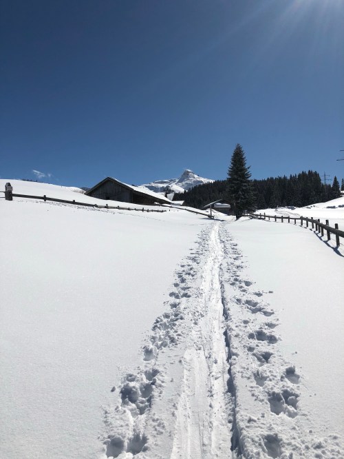 Ich mag es, wenn es gegen Ende des Winters nocheinmal so richtig schönen neuen Schnee gibt – da hat der Webstuhl daheim leider das Nachsehen!