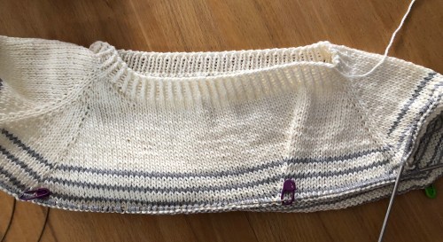 Es gibt zur Zeit keinen Plan für ein bestimmtes Vorhaben, für das ich Wolle brauche. Doch, es gibt einen Wunschpulli, den ich stricken möchte – es ist der Carbeth von Kate Davies. Diesen Pulli möchte ich allerdings einfärbig stricken. Mein einfärbiger Faservorrat in Pullovermengen beschränkt sich allerdings auf Lama und Alpaka. Vielleicht sollte ich darüber nachdenken. Diese Fasern sind allerdings weder gewaschen noch kardiert – was nicht heißt, dass ich sie nicht auch so verspinnen könnte.